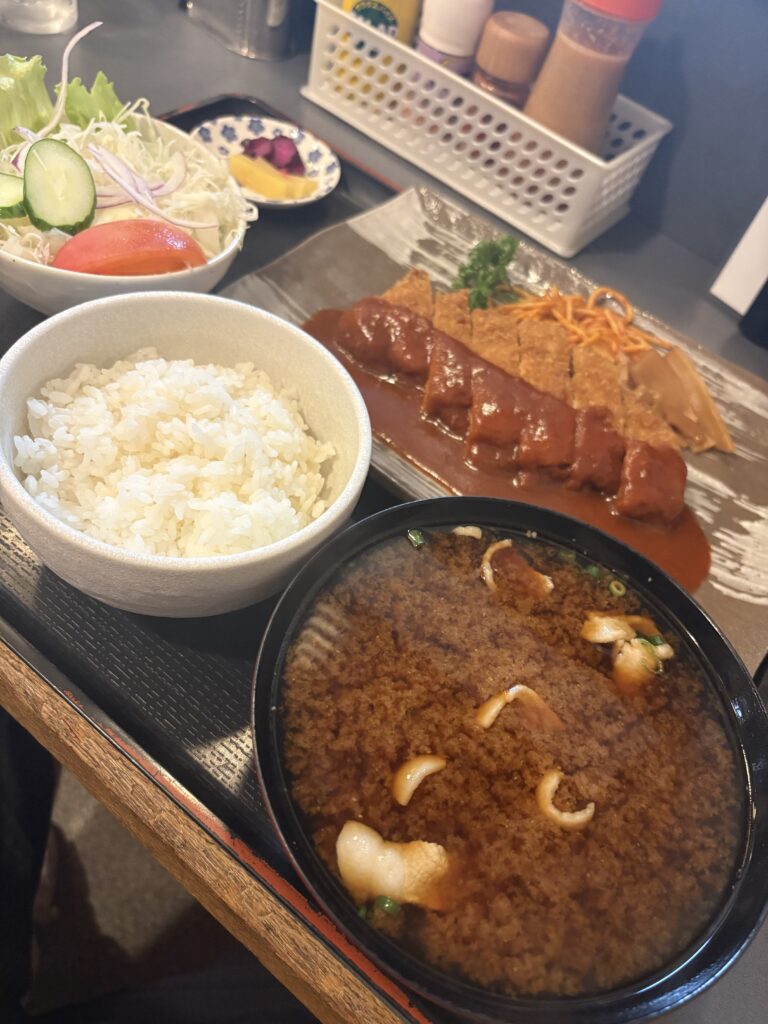 注文したのは厚切りロースとんかつセットです。数量限定という言葉が目につき、せっかくならとの事で注文しました。お肉も柔らかくデミグラスソースとの相性も抜群で一口食べればやみつきになること間違いなしですね!とても美味しかったです!赤だしの豚汁も美味しいうえに大盛まで無料なんて最高でした!
