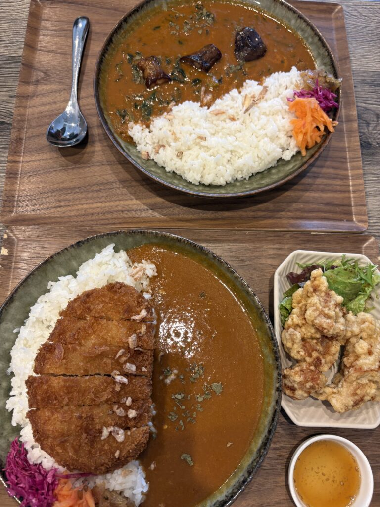 かなり多くの種類のカレーがありましたが、今回は初めてとのこともあり、ロースカツカレーとから揚げを。