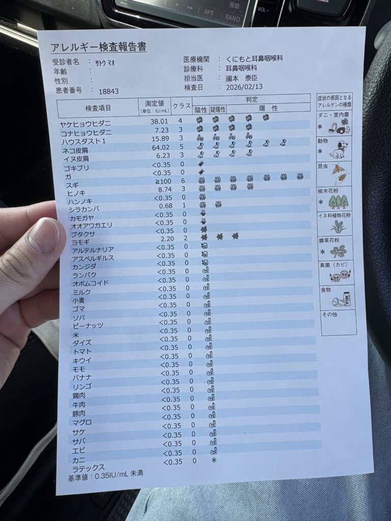 佐藤の中でもいつかはアレルギー検査をしてみないとなとも思っていましたし、花粉以外のアレルギーはあるのかというのも気になっておりました。