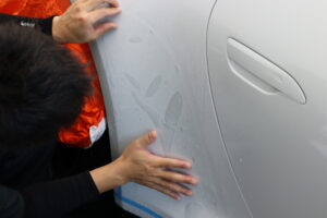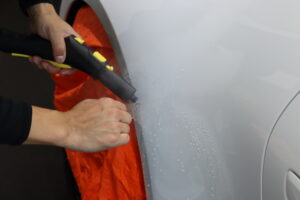 作業の方は、熱処理を加えながら糊残りを除去し、塗装面を傷めないよう注意を払って作業を進めました。