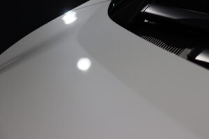 当日、お電話で洗車のご予約をいただきご来店いただきました。納車後、お車の汚れが気になった際に水道水をかけて放置してしまったようで、その際にできた水シミが気になるとの事でご相談いただき、そのままお預かりいただく事になりました。