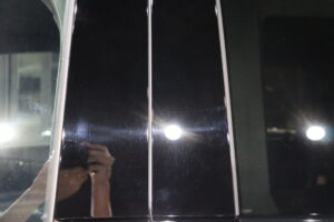 ボディ全体は非常にキレイな状態でしたがブラックパーツは新車でも多少のキズが見受けられます。ライトポリッシュでキズをしっかりとリカバリーしていきます。